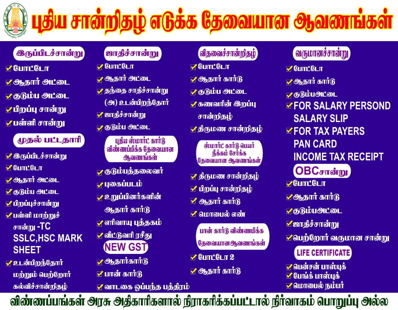 புதிய சான்றிதழ் எடுக்க தேவையான ஆவணங்கள்